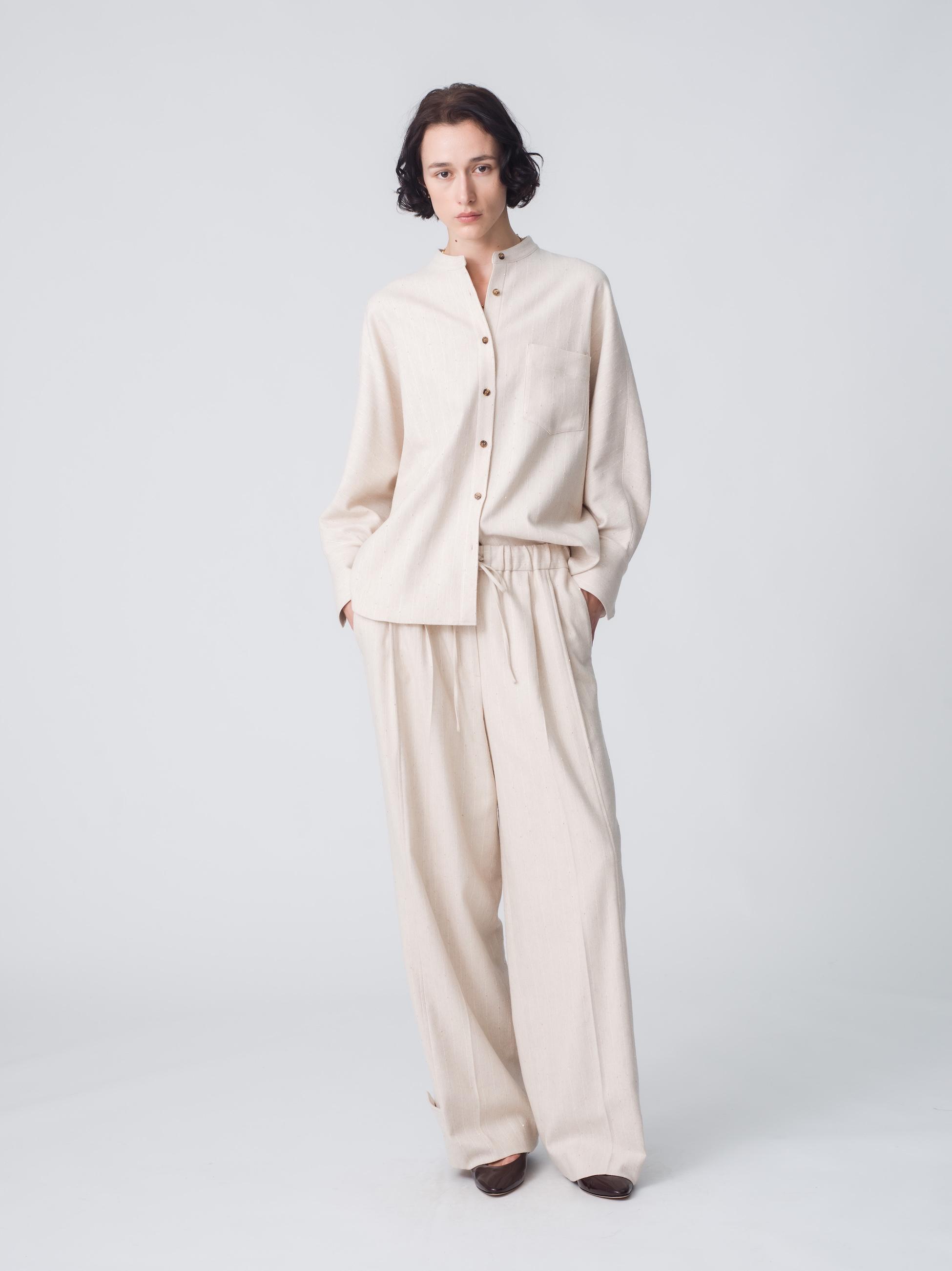 デイリーに着回しを楽しめるウールポプリンのブラウスやスカート、